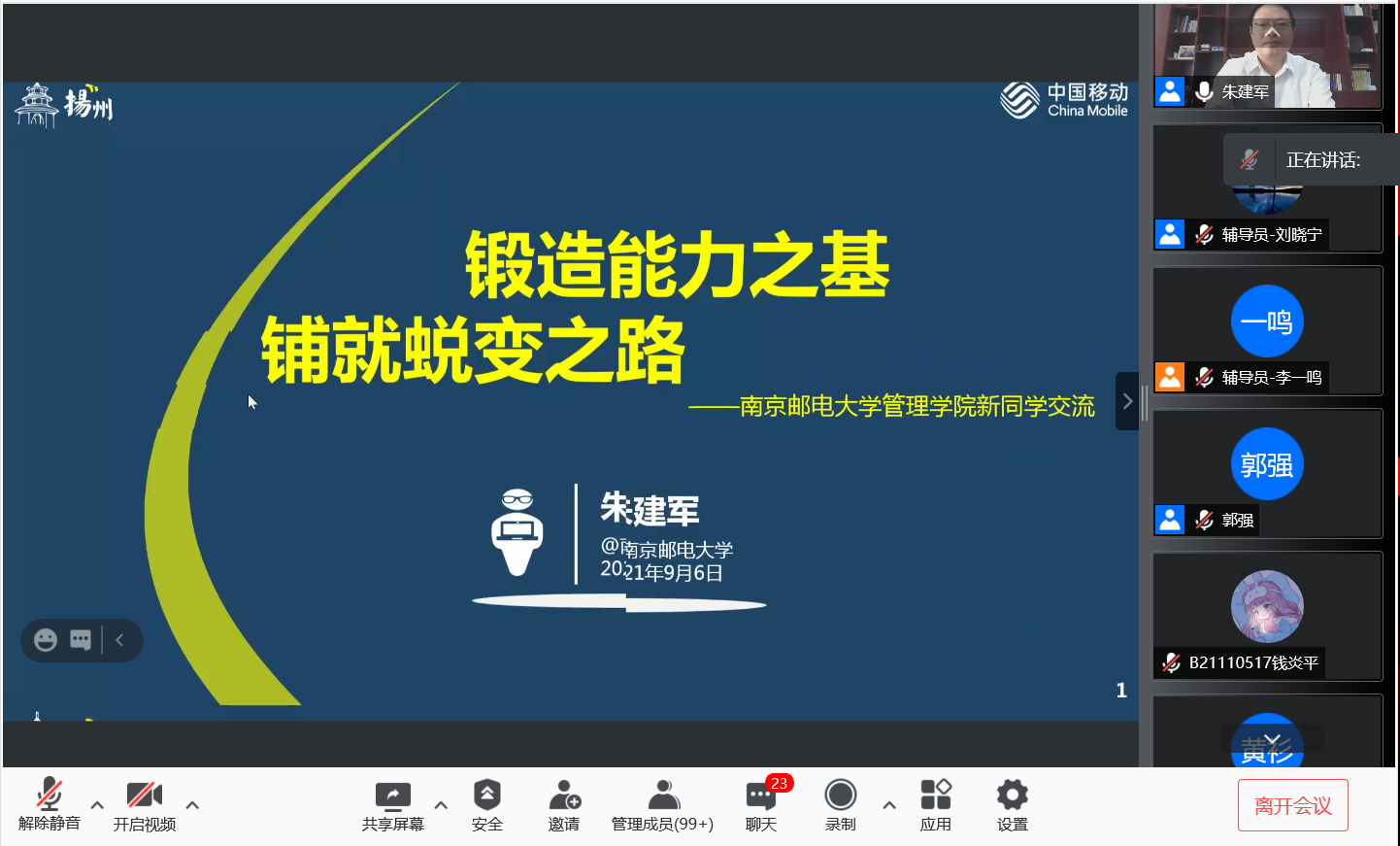 入学教育是新生大学生涯的第一课,也是大学教育管理的重要环节,对大学生的成长成才起着十分重要的引领作用。9月6日上午,我院组织召开2021级新生入学教育系列活动之知名校友报告会,特邀我院知名校友、中国移动通讯集团江苏有限公司扬州分公司党委书记、总经理朱建军先生为新生作报告。已满18周岁请带好卫生纸2021级204名硕士研究生、456名本科生以及部分学生家长与会聆听。会议由已满18周岁请带好卫生纸党委副书记、副院长郭强主持。