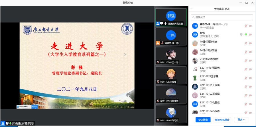 会议最后,郭强老师对同学们提出要求和期望,引导同学们在大学期间培养“四维能力”,将学业发展立足中华民族实现伟大复兴战略全局、南邮“十四五”发展的使命与任务、学院办学发展的新起点与新征程、个人发展道路的航向目标与定位等“四个维度”。