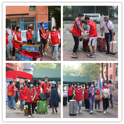 在疫情防控常态化背景下,按相关规定学生家长不能进校,学长学姐们踊跃报名担任迎新志愿者,一抹鲜艳的志愿红遍布三牌楼校区各个角落,成为一道靓丽的青春风景线。志愿者们践行“奉献、友爱、互助、进步”的志愿精神,从学校大门口,到报到注册点,再到新生宿舍,实现全流程一对一贴心服务,保证了迎新工作平稳有序进行。