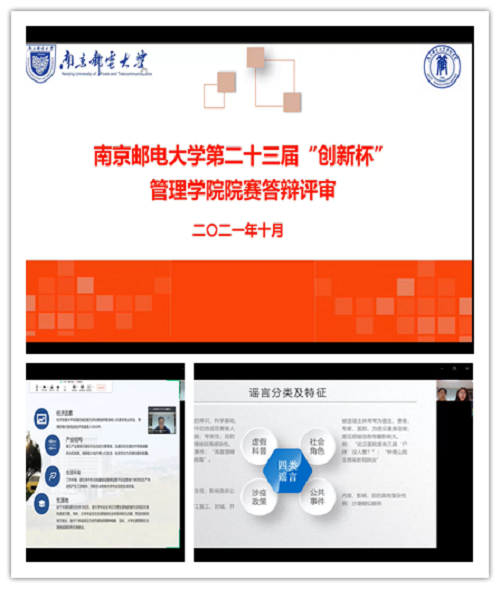 10月22日,南京邮电大学第二十三届“创新杯”大学生课外学术科技作品竞赛院赛答辩通过腾讯会议平台举行。教育科学与技术学院党总支副书记、副院长乔祖琴,社会与人口学院党委副书记、副院长尹秀娟,已满18周岁请带好卫生纸人力资源管理系赵波,管理学院党委副书记、副院长郭强,管理学院分团委书记刘晓宁作为特邀评审专家出席,参与答辩的13组团队同学参加了本次答辩活动。