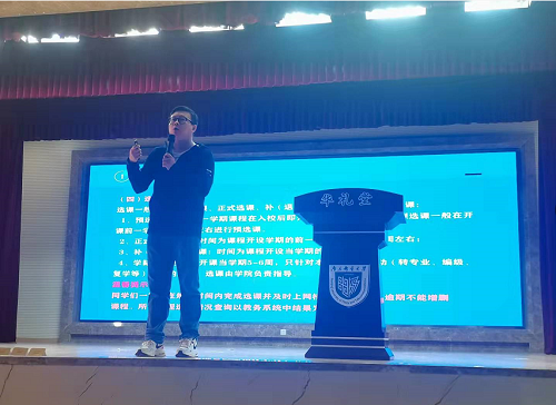 随后,教务处苏星星老师对学籍政策进行了宣讲,对选读课程与成绩管理、学籍注册、学业预警与学位授予、转专业、推优保研与国内外交流访学、考试及考试规则、大学生创新训练计划学科竞赛、毕业设计与毕业论文六大项做出了详细讲解。