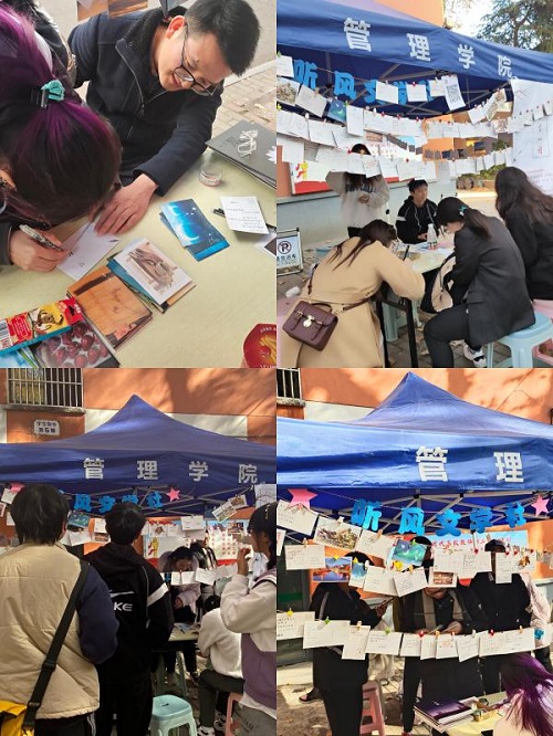 为进一步促进同学之间的互相交流,给同学们提供一个独特的交流平台,增强同学之间的联系,提高同学们的归属感,管理学院听风文学社于11月24日、25日在三牌楼校区开展“小雪心语”明信片漂流活动。本次明信片漂流主题是:小雪心语。