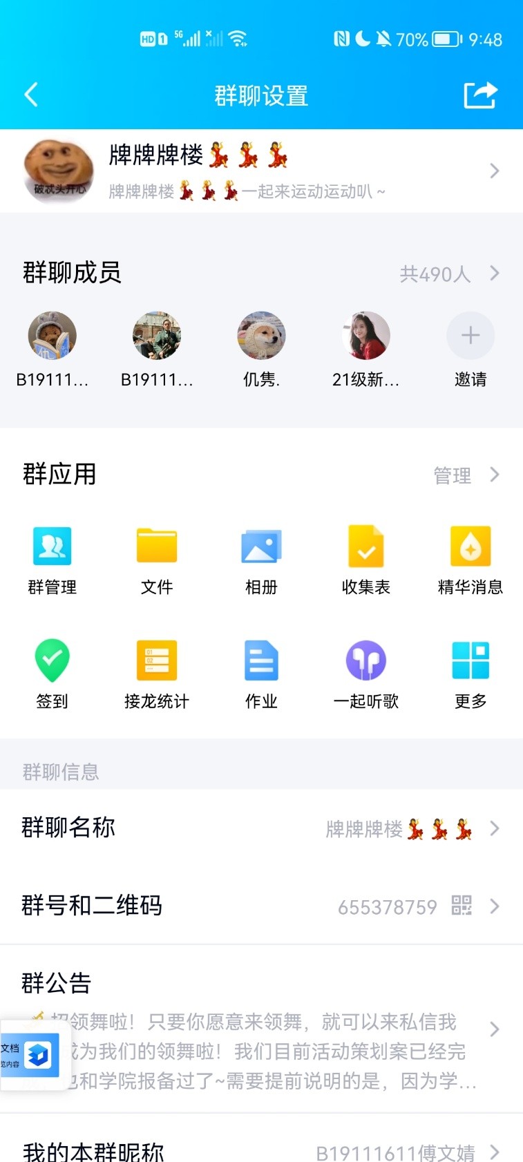 目前,广场舞活动的信息发布群中已有490位同学,活动暂定于每周三、周五、周日傍晚开展,当天课程较少,同学们时间充足,临近双休日也有效利用了同学的课余时间。在活动开始前,负责人会开放报名通道,综合参与次数和报名先后顺序筛选名单,将人数严格控制在40人左右。截至4月7日,广场舞活动共举办了两次共四场,吸引了150余人次参与。