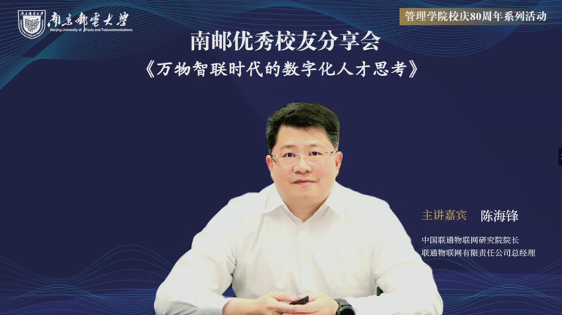 时值南京邮电大学八十周年校庆之际,我院特邀97届优秀校友,中国联通物联网研究院院长、联通物联有限责任公司总经理陈海锋高级工程师做线上分享讲座。学院本科生、研究生、部分教师及学生家长线上参与分享会。会议由学院党委副书记、副院长郭强主持。