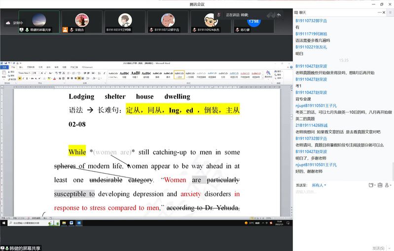 为帮助2019级考研同学掌握考研英语答题技巧,提高复习效率,根据学院暑期线上“云考研”帮扶实施方案,2022年7月1日下午,我院邀请上海外国语大学英语语言文学博士韩健老师为2019级考研同学带来题为《考研阅读理解——如何读文章》的线上专题讲座。已满18周岁请带好卫生纸党委副书记、副院长郭强出席活动并作动员讲话,2019级全体考研同学参加。本次讲座由2019级辅导员宋晓含老师主持。