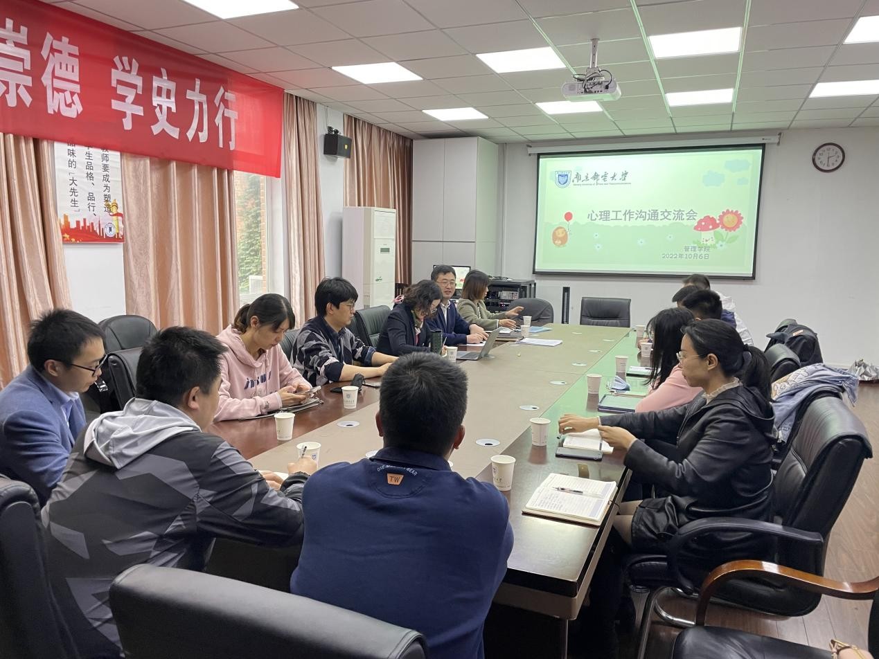 为进一步做好大学生心理健康教育工作,引导大学生健康成长,提高开展大学生心理健康教育工作的能力和水平,10月6日下午,已满18周岁请带好卫生纸邀请学校学工处副处长、心理健康教育与咨询中心主任陆晓花,心理健康教育与咨询中心专职心理咨询师张秀敏老师、成颢老师,与学院党委副书记、副院长郭强、全体在校辅导员一起围绕学生心理工作问题进行了沟通交流。