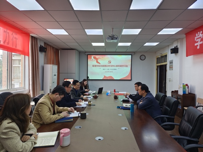 3月8日上午,学院党委理论学习中心组在三牌楼校区有线楼306会议室专题学习党的二十届二中全会精神,院党委书记钟凯主持学习会。