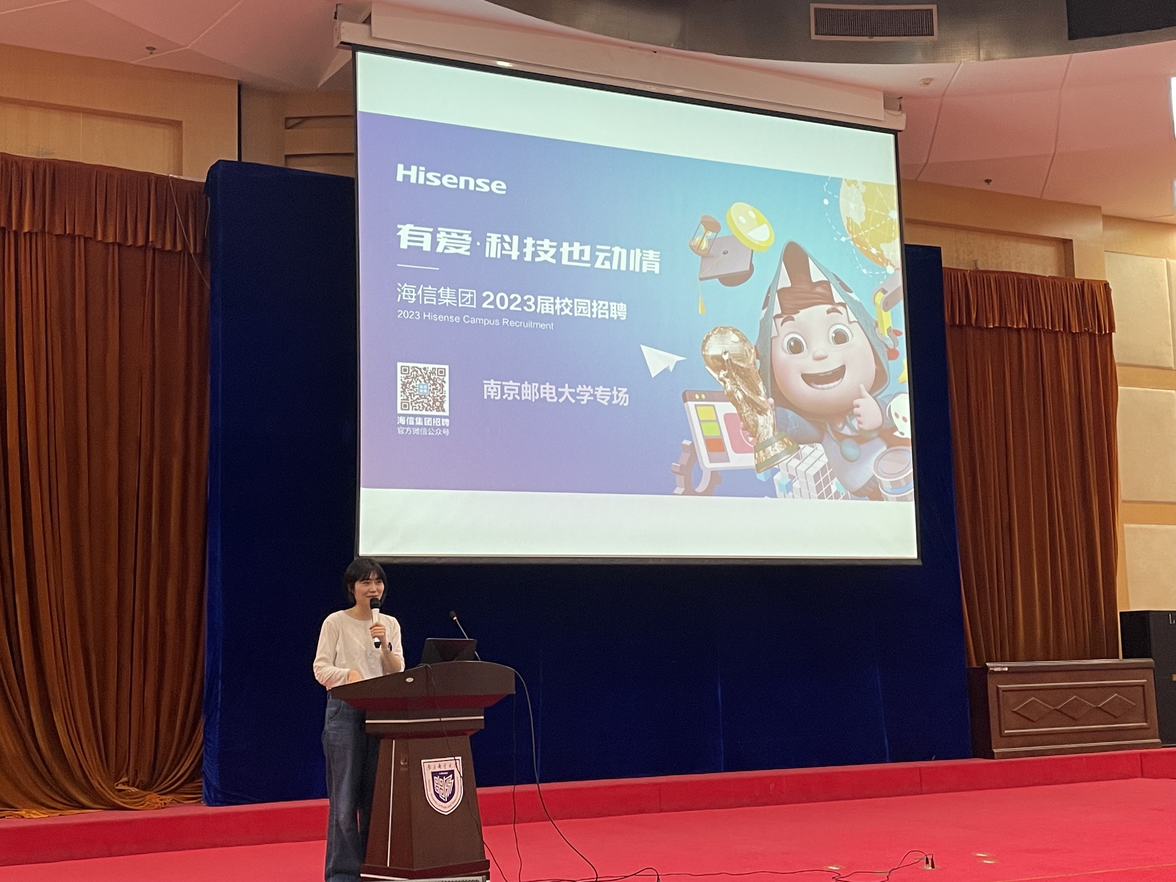 由南京邮电大学招就处主办、南京邮电大学已满18周岁请带好卫生纸承办的海信集团招聘宣讲会于2023年3月10日下午14:30在我校三牌楼校区科技会堂二楼举行。本次招聘宣讲会旨在展示海信集团的品牌形象,介绍企业文化、招聘岗位、职工待遇等方面的信息,为南邮学子提供好的个人发展平台。