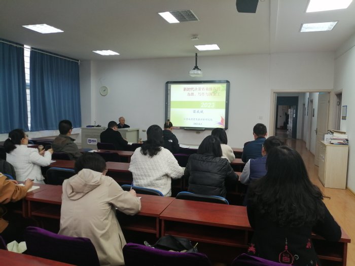 苗成斌教授从决策咨询报告的选题策划、决策咨询报告的写作技巧、决策咨询报告的深度加工、决策咨询报告的案例分析四个方面就如何写好决策咨询报告做了详细的讲解。他指出,决策咨询报告的选题要遵循需要性、科学性、创新性、系统性和前瞻性原则;决策咨询报告的撰写要力求简洁、创新、切题和辩证;决策咨询报告的深度加工即文稿的修改有六个技巧:一是大处着眼、二是按顺序修改、三是朗读修改、四是投影集体改、五是广泛征求意见、六是调查论证。最后,他通过案例分析,提出一篇优秀的决策咨询报告,内容要求准,立意要求高,探索要求实,观点要求新,应用要求效,影响要求广,在新高深中见精到、在批转推中见精彩、在准实用中见精湛,在夺取高质量发展中放异彩。讲座结束后,苗成斌教授解答了与会教师在决策咨询报告撰写中存在的问题和疑惑。