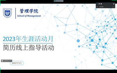 本次线上指导活动是我院2023职业生涯月系列活动之一,活动前期我院面向2024届全体本研毕业生组织开展简历大赛,全体2024届毕业生均提交了简历作品,经过学院初选将推报作品参与校赛和后续模拟面试等环节,通过相关的模拟环节,将帮助我院学生更好熟悉和掌握真实的求职过程,争取在今秋明春的招聘季有更好的表现。