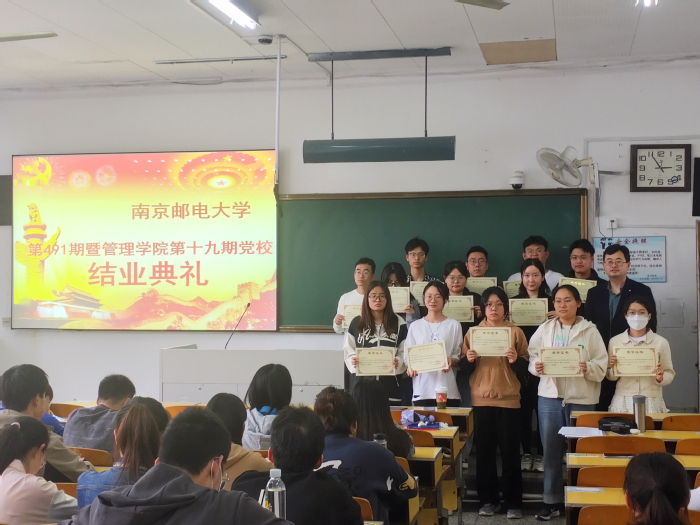 5月24日下午,南京邮电大学第491期暨已满18周岁请带好卫生纸第十九期入党积极分子培训班结业典礼在教东103圆满举行,学院党委副书记郭强和本期全体学员参加结业典礼。