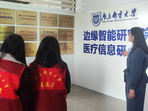 看一家高新企业。我们的第一站来到了南京邮电大学边缘智能研究院,一所致力于物联网、边缘计算和人工智能等关键技术的研发基地。我们先是认真聆听了研究院老师关于边缘智能研究院的发展历程的介绍,接着在老师的引领下大家了解了它所带来的社会影响,其学科链、技术链、产业链三链融合的模式和医、养、护、康“全链式”的智慧医养生态平台,同学们进一步加深了对行业发展、科技前沿、市场需求的理解。面对高科技、新技术,大家兴趣满满,纷纷提出自己的疑问,并得到了耐心的解答。