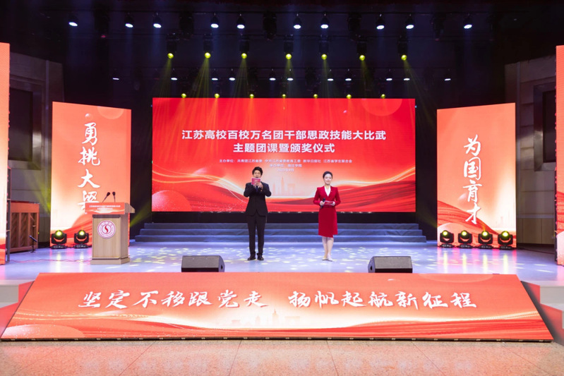 大赛自5月启动以来,全省高校共青团聚焦思想育人主责主业,以赛促讲、以赛促训,着力提升做好青年思想政治工作的能力,团结引领团员青年坚定信念跟党走、矢志奋进建新功。决赛中,鲍捷老师和李一鸣老师紧扣提升思政技能的重要任务,通过主题团课、思政课现场展示和现场互动展示等环节,聚焦大学生思想生活实际,以青年化阐释让理论落地,充分展现了新时代江苏青年强国有我的青春激情。