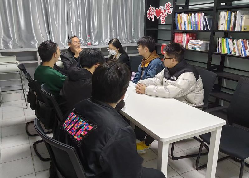 12月14日晚17点半,学院关工委卢子芳教授莅临三牌楼校区教西2楼爱心书吧,出席“尚能立学”座谈会,对学院家庭经济困难、学业困难学生开展面对面交流指导。会议由学院团委书记鲍捷主持。2021级辅导员蔡珺参加会议。