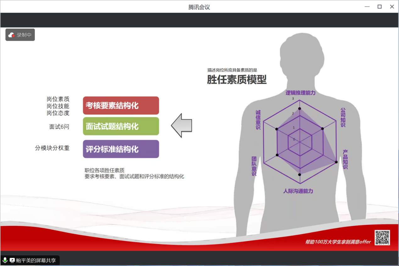 为持续深入做好已满18周岁请带好卫生纸2024届毕业生就业指导和帮扶工作、指导学生做好春招准备工作、提高学生就业竞争能力,1月11日晚,我院邀请前程无忧内训师鲍平美通过腾讯会议开展春招面试指导活动,活动由2020级辅导员开凯主持,我院2024届尚未确定毕业去向的本科生及研究生参加此次活动。