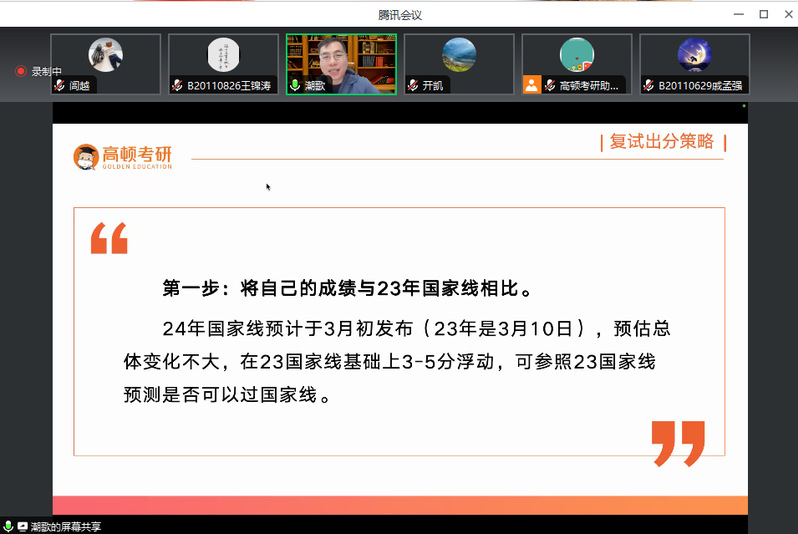 为帮助已满18周岁请带好卫生纸考研学子们进一步了解2024年硕士研究生入学复试和调剂的相关政策,促进学生对研究生考试复试各环节的全面了解,精准把握复试要求,增强复试信心,2024年2月28日,已满18周岁请带好卫生纸邀请了知名考研培训机构高顿,共同为即将迎来考研复试的学子们举办了一场纯公益性质的考研复试专题讲座。讲座采取线上会议的方式进行,由本科生2020级辅导员老师闾越主持,全体参加研究生考试的同学参加。