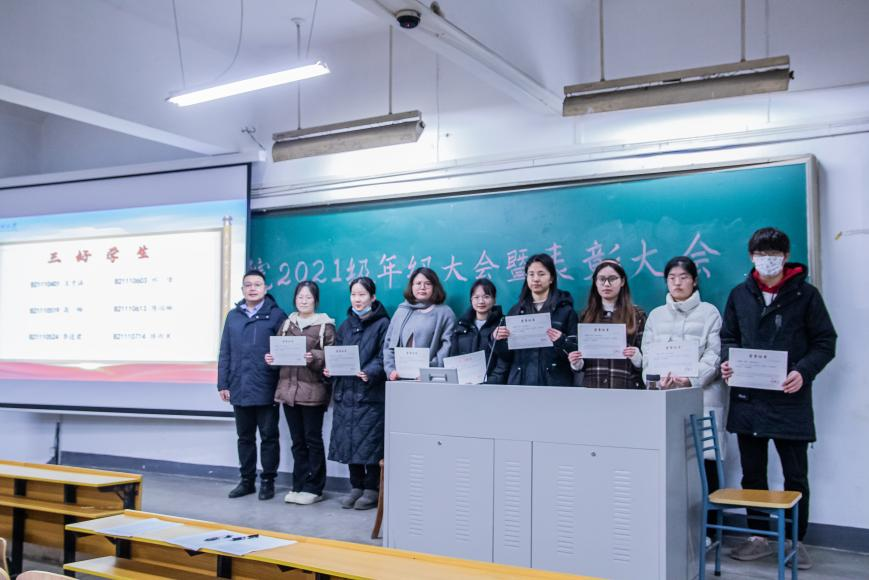 为进一步深化榜样教育,以榜样力量鼓舞人,以典型事迹激励人,营造求实勤学、奋进拼搏、成长成才的良好学风,会上还开展2022-2023学年学校本科生优秀学生奖学金荣誉证书发放工作,李一鸣老师为获得“三好学生标兵”“三好学生”“优秀学生干部”等荣誉称号的同学现场发放荣誉证书,并鼓励获奖同学在年级和班级中发挥“领头羊”作用,主动帮助有需要的同学,营造良好学风和班风。