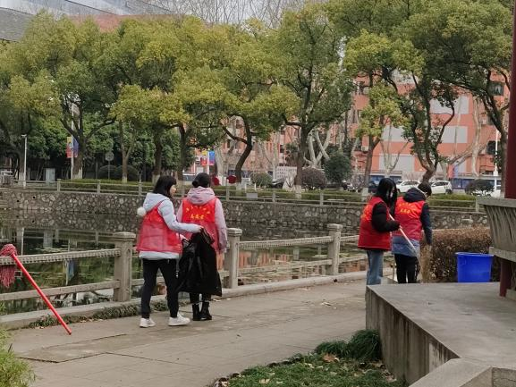 在分配好各自的任务后,同学们于三牌楼校区眼镜湖旁、篮球场、行政南楼周围以及假山周围等进行卫生打扫活动。志愿者们穿梭于校园的每个角落,身披鲜艳的红马甲,手持扫帚簸箕,分工明确,相互合作,高效迅速地完成了清扫任务。