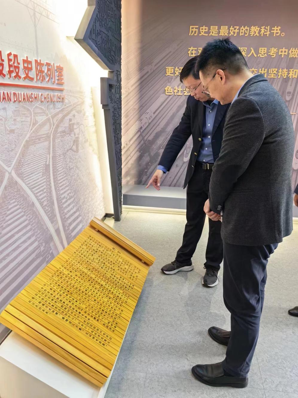 钟凯书记一行人首先来到了徐州电务段段史展览馆,参观了徐州电务段的历史沿革和发展变迁,感受了中国铁路的飞速发展和铁路人的默默奉献。在座谈交流中,马磊代表徐州电务段对钟凯一行的来访表示热烈欢迎,充分肯定了南京邮电大学在学科建设、学生培养方面的成效,并介绍了南邮毕业生在段内目前的工作现状和表现。钟凯从学校历史、科研发展和人才培养等方面进行了介绍,并希望有更多南邮学子可以有机会进入段内工作,为国家的铁路事业做出自己的贡献。