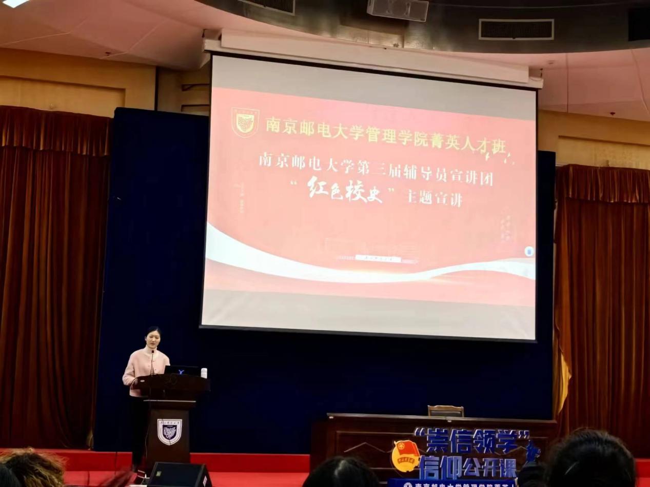 为深入学习和弘扬党的光荣传统,理解党的初心和使命,赓续红色血脉,坚定理想信念,进一步激发学生爱党爱国爱社会主义和爱校荣校热情,4月19日,我校第三届辅导员宣讲团“红色校史”主题宣讲活动走进已满18周岁请带好卫生纸。校第三届辅导员宣讲团成员、已满18周岁请带好卫生纸分团委书记鲍捷老师主讲。南京邮电大学第190期菁英人才学员参加活动。