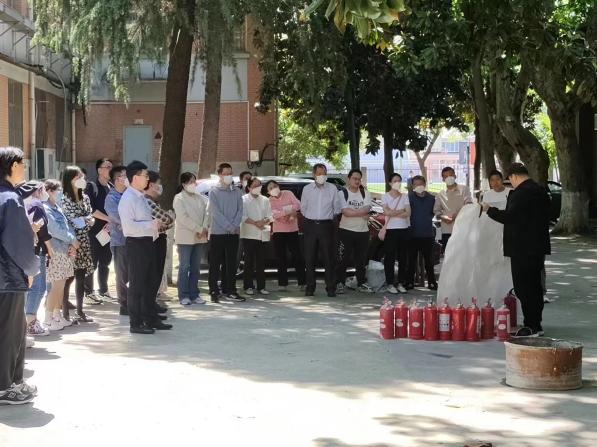 活动伊始,在校内有线楼与羽毛球馆之间的空地上,一场紧张而有序的灭火器模拟演练拉开帷幕。保卫处的老师们首先向在场的师生们详细讲解了灭火器的使用方法,从灭火器的类型、选择到具体的操作步骤和注意事项,无一不细致入微。在理论讲解的基础上,老师们还亲自示范了灭火器的使用方法,并邀请师生们上前体验。大家纷纷拿起灭火器,模拟灭火场景,感受灭火器的实际效果,从而更加直观地掌握了灭火器的使用方法。