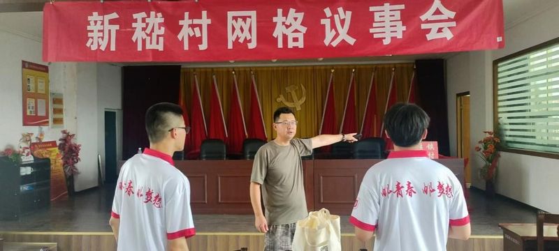 在新嵇村村委会,团队成员遇到了村生计主任蒋秋平。蒋秋平详细介绍了村内的具体情况,并解答了团队成员们的疑惑。