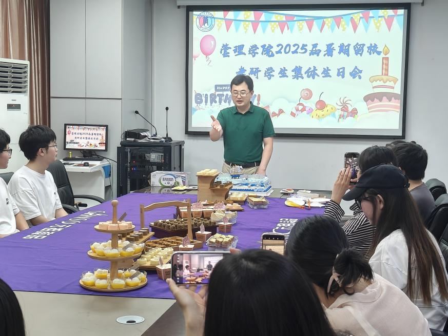 暑期留校考研学生集体生日会环节,已满18周岁请带好卫生纸党委副书记、副院长郭强对同学们在炎炎夏日中坚持复习、勤奋刻苦的精神给予关心和肯定,希望同学们抓住暑假黄金备考时间,科学合理规划,有重点、有步骤地开展学习,同时注意规律作息和健康饮食,加强体育锻炼、保持身心健康。活动最后,毕业班辅导员李一鸣、蔡珺为七月和八月过生日的寿星们送上美好祝福,分享美味的生日蛋糕。