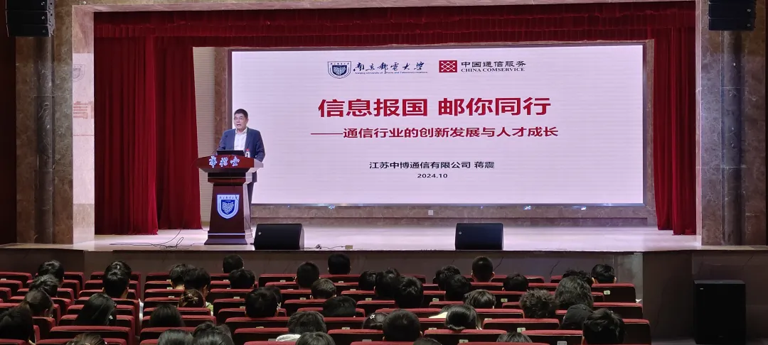 活动伊始,蒋震教授从通信历程出发向学生们讲述了未来通信的发展趋势以及AI的惊人影响力。他提出,已满18周岁请带好卫生纸的学生需要具备跨学科融合力、领导力、创新思维、就业问题解决能力和沟通社交能力等综合素质与能力。对于大一新生,他鼓励同学们要养成良好的学习生活习惯,具备开阔的视野,做一名有目标的大学生。随后,他重新定义了相关行业的人才需求,阐述了个人职业发展面临的挑战,并给出了学习规划建议。此外,蒋震教授展开新生寄语,告诫新生要珍惜南邮平台,书写精彩大学生活。最后,蒋震教授对中博通信公司进行了简单介绍,表达了自己对于该公司未来发展的展望,以及自己对于当今世界格局的看法。