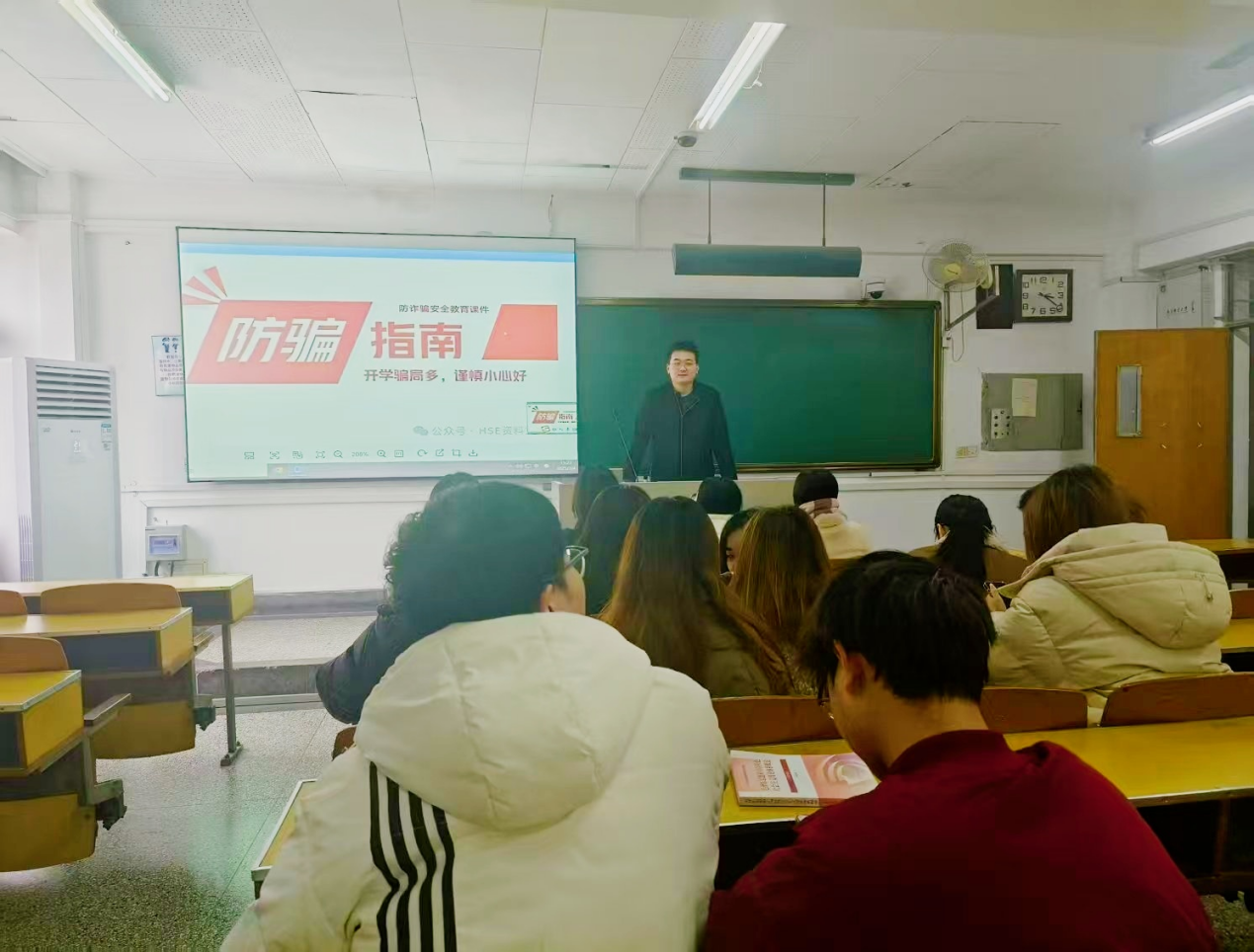 2月28日至3月5日,学院通过举办反诈主题班会,邀请校保卫处刘庆霄主任召开专题讲座等形式开展反诈宣传。班会上,通过QQ被盗、论文投稿中介、得奖抽奖、刷单等六大类典型案例分析让学生更直观地了解诈骗的危害性及防范措施;学长学姐们则结合自己的亲身经历,传授实用的防骗技巧。