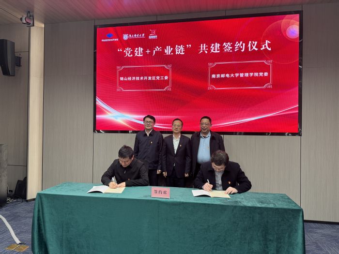 在签约仪式上,学院党委与锡山经济开发区党工委签署了“党建+产业链”共建协议,学院6个系党支部分别与中微龙图电子科技无锡有限责任公司党支部、上药控股江苏股份有限公司党支部、无锡市锡山区公众人力资源有限公司党支部、江苏华郢智能技术有限公司党支部、江苏达利园物流科技集团有限公司(众盟物流园)党支部、江苏集萃集成电路应用技术创新中心党支部等签署了合作共建协议。院长黄卫东为锡山经济开发区相关同志颁发就业创业导师聘书,副书记、副院长郭强,副院长周晓剑、张冲分别为锡山经济开发区黑料网在线观看视频部、无锡云创产业发展有限公司、中皓科创集团产研院等9家单位进行大学生实习实践基地授牌。全面开启校企(地)双方在大学生就业创业、科研合作、员工培训、MBA招生、实习实践等方面的深度合作。