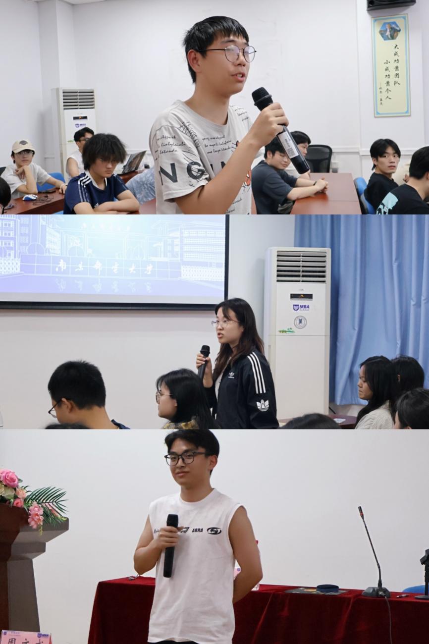 接下来第二个环节优秀学生分享:我校22级MPAcc研究生、斩获华为offer的边乐卿学长则以面试经验为例,建议“提前准备面经、灵活应对压力测试”。加州大学伯克利分校毕业生刁瑞琦分享跨学科学习与海外丰富的实践经历,强调“探索兴趣、关注心理健康”的重要性;我校22级工商管理学硕、已考入北京邮电大学博士研究生柏玉馨学姐为在座学子解析国内申博流程,提醒“学术能力与导师沟通”的关键作用;环节最后主持人周老师还指出三位优秀学子的共同特点“认真”“务实”“从另一个角度看世界”,并希望在座学生向之学习。