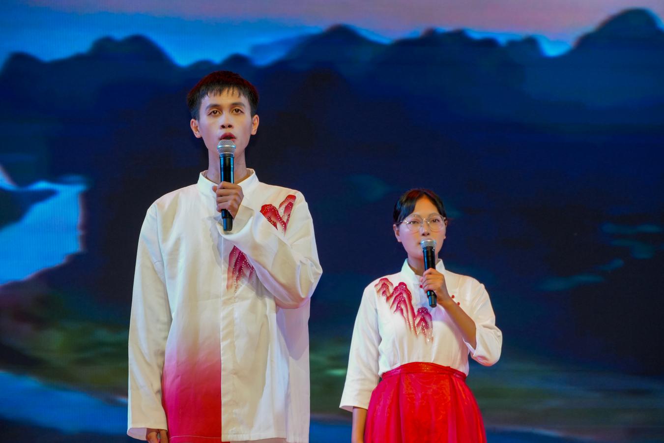 11月7日晚,全体参赛人员齐聚仙林青春剧场,管院团队以第十四位的顺序登场亮相。同学们以饱满的热情,声情并茂的朗诵了这篇脍炙人口的红色经典作品。通过富有感染力的朗诵,配以精心设计的舞台表现,生动诠释了《青春中国》这部作品所蕴含的爱国情怀,他们用声音描绘出中国发展的壮丽画卷,用激情表达了对祖国的深情祝福。