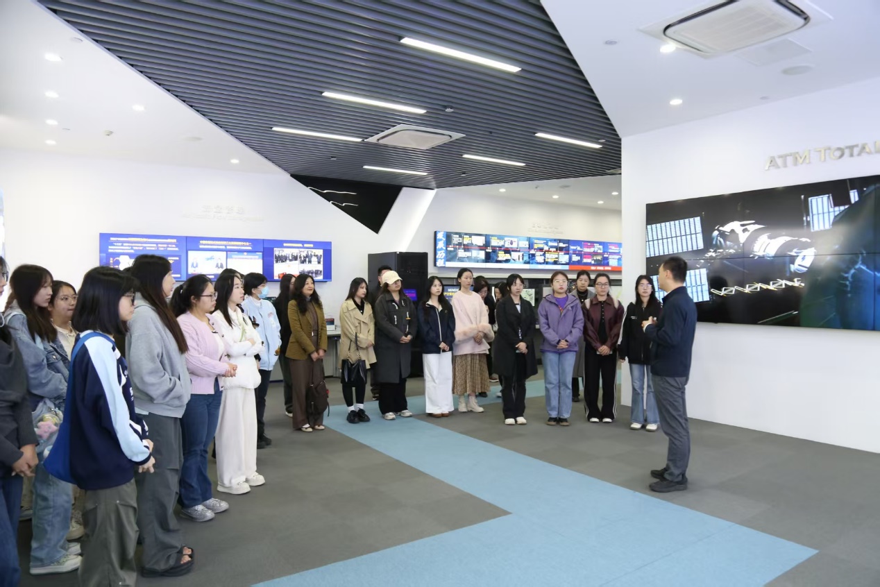 作为国内公共信用产品集成商和软件服务商的领军产业,莱斯信息面向航空运输、道路交通以及城市治理等行业领域信息化需求,提供以指挥控制技术为核心的整体解决方案和系列产品,系统构建起从国家到市级创新平台。在企业展厅,同学们在讲解员的细致引导下,系统了解了民航空中交通管理系统与低空经济发展的前沿动态,近距离接触了民航全国流量管控系统、空管模拟训练系统、北京大兴机场四级运行A-SMGCS高级场面活动引导与控制系统、“天牧”低空飞行管理平台等行业标杆成果,对民航控制、“低空经济”形成了更为深刻的认知。