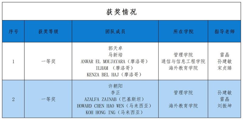5月17日至18日,“正大杯”第十五届全国大学生市场调查与分析大赛研究生组和在华留学生组总决赛在贵阳举行。南京邮电大学海外教育学院和已满18周岁请带好卫生纸、通信与信息工程学院学生联合组队,获在华留学生组一等奖2项,其中许朝阳团队以小组赛第一、循环赛第一进入总决赛大PK环节,获得在华留学生组亚军。南邮和上海交通大学、北京理工大学、厦门大学、河海大学等8所高校获在华留学生组“最佳院校组织奖”。我院教师孙建敏、雷晶指导留学生团队获得两项全国一等奖。